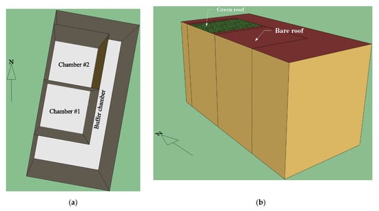 In order to evaluate the accuracy of the GRM in Guangzhou’s subtropical climate, we compared the measured results from the experimental system (as shown in Figure 1) to the simulated values. As shown in Figure 2, the building model for the simulation was identical to that of the experimental system.