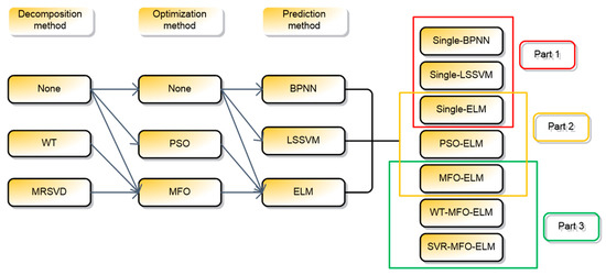 In section 3, MFO-ELM, WT-MFO-ELM, MRSVD-MFO-ELM were used to demonstrate the effectiveness of the carbon price decomposition process and the advantage of MRSVD.