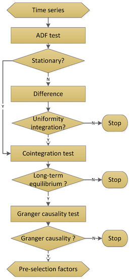 At present, there are few literatures on carbon price prediction considering both internal factors (carbon price historical data) and external factors (the influencing indicators of the carbon price, such as energy price, economic index, and so on). Most of the literature only predicts carbon prices based on historical data or only studies the relationship between carbon prices and their influencing factors. Therefore, historical data determined by partial autocorrelation function (PACF) and influencing indicators selected by the augmented Dickey–Fuller (ADF) test, cointegration test, and granger causality test are both used to predict carbon prices at the same time in this paper.