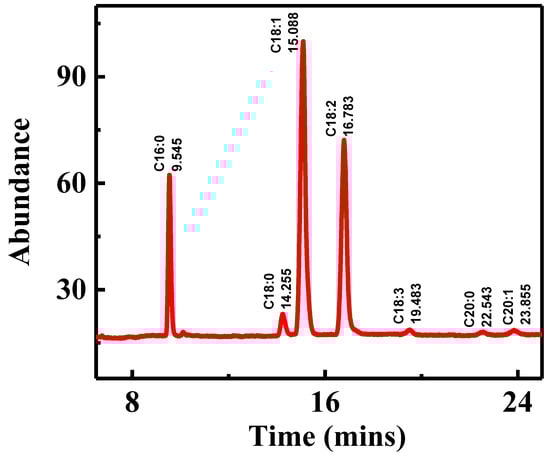 The obtained RT FAMEs result was checked and tested by GCMS (QP2010SE, Shimadzu, Tokyo, Japan). GC-MS conditions are listed in Table 1. Detail procedure is present in Figure S2 (Supplementary Materials).