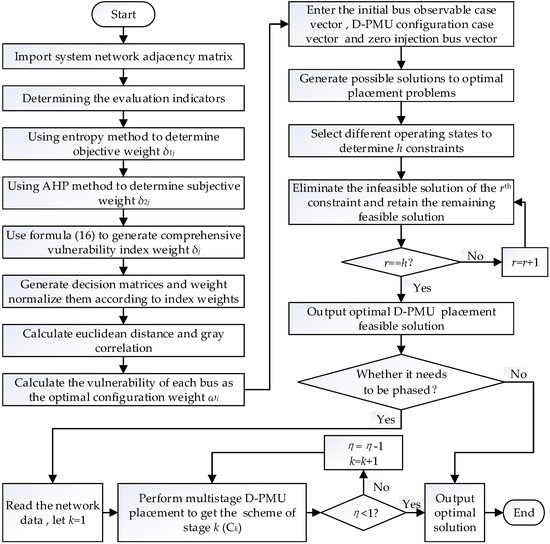 Flow chart of the optimal D-PMU placement process.