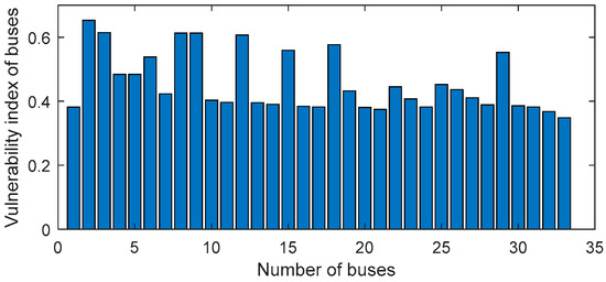 The vulnerability index of the IEEE 33 bus system.