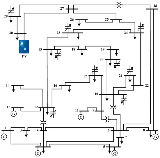 In this paper, we consider three benchmark power systems with 30, 57, and 118 buses that have the same characteristics of a real system. In fact, the systems are comprised of transformers, capacitors, conductors, generators, loads, and buses. These components are represented by important parts and included in the OPF problem. For instance, transformers are represented as the tap changer and limitations of the tap changer are considered in Equation (8). Capacitors are also concerned and installed at some buses with the intent to supplement reactive power to loads and control voltage of load buses. Limitations of reactive power from the capacitors are shown in Equation (9). Important parameters of loads are active power, reactive power, and working voltage limitations. Voltage limitations of loads are shown in Equation (10) meanwhile the balances of active and reactive power are shown in Equations (12) and (13). Conductors or transmission lines are taken into account by the presence of apparent power limits shown in Equation (11). In dealing with optimization problems in power systems, the most difficult task is to collect parameters of electric components in real systems. Therefore, the solution is to use these benchmark systems that have the same characteristics of real systems.