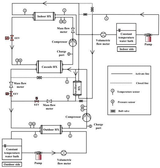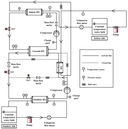- Kim, D.H.; Kim, M.S. The effect of water temperature lift on the performance of cascade heat pump system. Appl. Therm. Eng. 2014, 64, 273–282. [Google Scholar] [CrossRef]