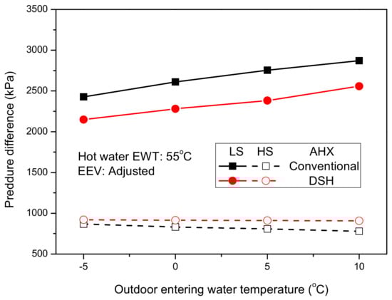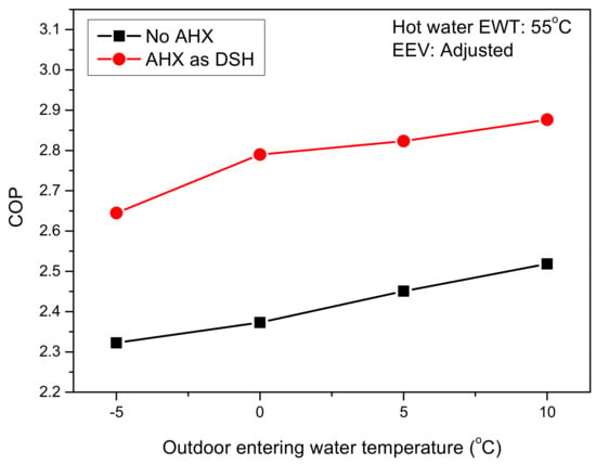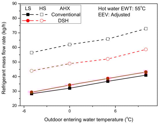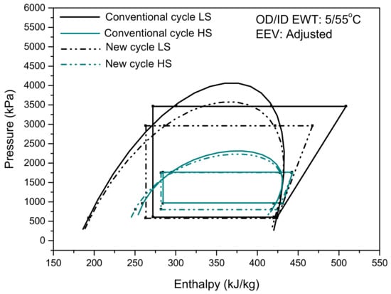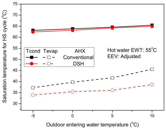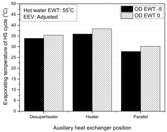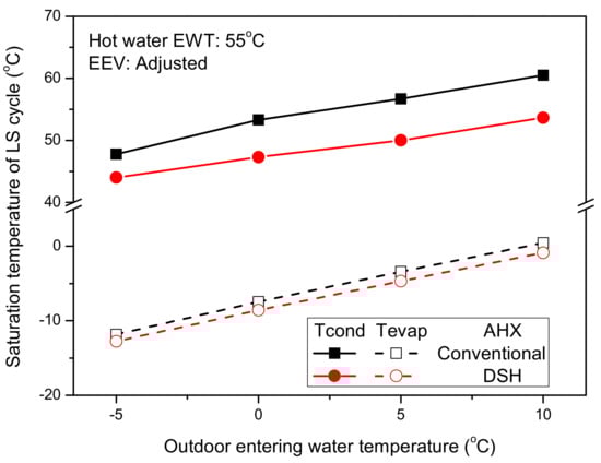 3.2. Performance Comparison between Conventional Cascade Heat Pump Cycle and New Cascade Heat Pump Cycle with AHX in Desuperheater Position