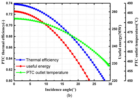 Optical (a) and thermal performance (b) of the PTC field versus solar incidence angle.