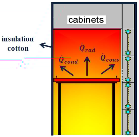 There were three basic ways of transferring heat: heat conduction, heat convection, and heat radiation. According to the heat dissipation process of the cabinet (Figure 6), the energy balance of this system initially could be expressed with Equation (8):
