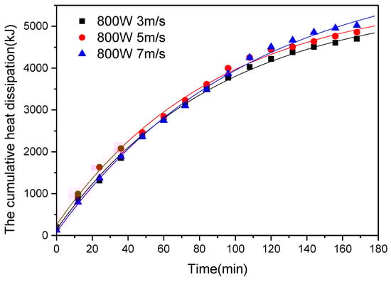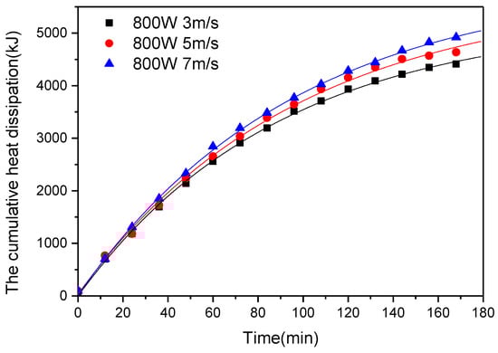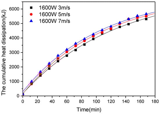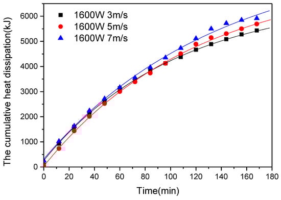 The cumulative heat dissipation of the fan was defined according to Equation (2):