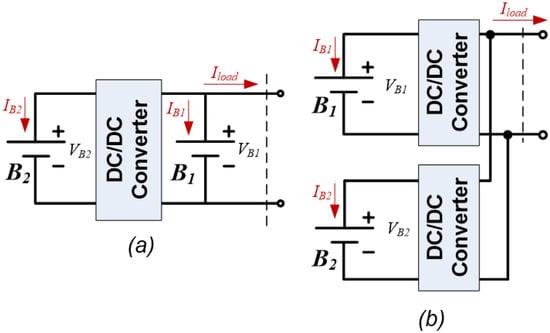 A HESS requires the exchange of power between different energy storage devices, so a power- electronics based DC/DC converter is required. Besides the storage technologies, there is an important field of study in the system architecture (how to arrange the storage elements, loads, and power converters). For this purpose, different categories of HESS have been proposed in the state of the art []. Most of the proposals [,,,] are generally included in one of these two types of architectures: