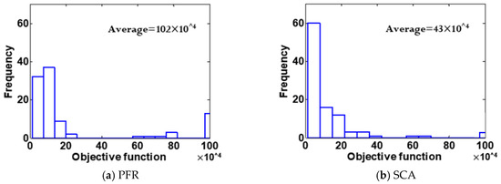 Objective functions of one hundred updated ensemble members using PFR and SCA.