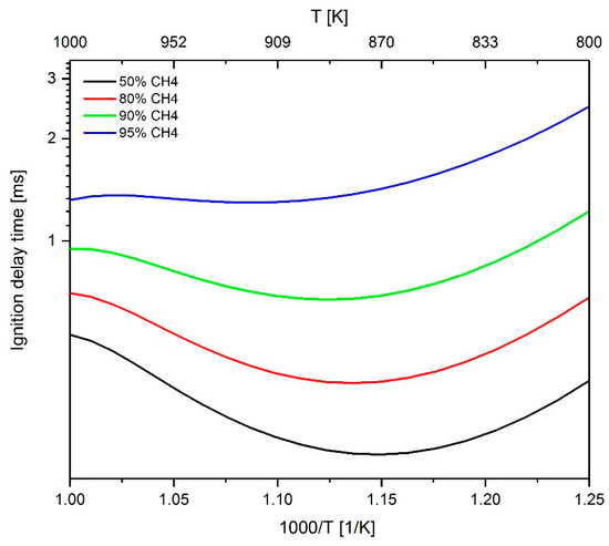 2.3.3. Investigation of the Influence of Methane on the IDT