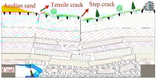 With the strategic westward migration of coal resources, high-intensity mining in western mining areas has become normal [1,2,3,4]. Fan [5] defined the concept of high-intensity mining from the aspects of the proportion of the mining area, panel size and mining rate. Subsequently, Guo et al. [6,7] proposed a new definition of high-intensity mining and technical characteristics based on the green mining theory. Through the innovation in theory, technology and equipment, China has made great progress in thick seam mining [8,9,10,11]. At present, the world’s first 8.8 m super-large mining height, intelligent and fully mechanized mining face (panel size: 5262 m × 299.2 m) has been successfully operated at the Shangwan coalmine, with a daily coal output of about 54,000 t [12]. Wen et al. established the roof control design criteria and support-load calculation method for large mining-height stopes, and had been successfully applied in 8204 working faces in the Datong Coal Mine [13]. Roof cutting pressure releasing technology in the retracement channel had been proposed and applied in many coalmines, such as Tashan [14], Halagou [15] and Ningtiaota [16]. A few key technologies with independent intellectual property rights have been formed by studying the safe and efficient mining of an 8-m-thick coal seam, which achieves more than 15.5 Mt/a [17]. The coal resources in northwest China are abundant, which are characterized by a shallow-buried depth, stable occurrence, hard coal quality and poor caving ability; therefore, it is suitable for high-intensity mining. However, large-scale and high-intensity mining is liable to cause roof cutting, water and sand inrush, surface subsidence, groundwater and environmental damage, as well as other disasters, which seriously restricts the sustainable development of the western economy [18,19,20]. While the “silk road economic belt” brings new opportunities for coal enterprises to “go global”, meanwhile, it also draws people’s attention to the geological disasters in western China, especially the destruction of aquifers.