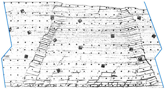 Surface topography and measuring points’ layout of the 52,505 working face.