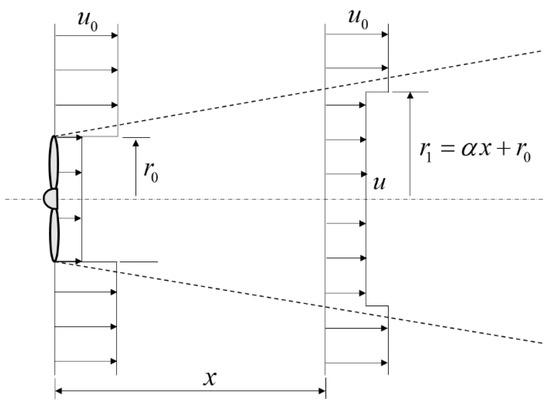 where u0 is the free stream wind speed, a is the axial induction factor, and α is the entrainment constant. Wake expansion radius r1 can be calculated as follows: