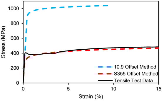 Yield strength values are more commonly determined by the offset method, and therefore the modified version proposed by Hill [15] has been used