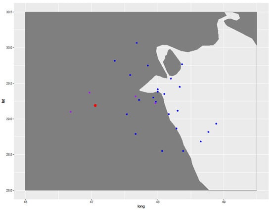Several authors have examined weather and circulation patterns over the Arabian Peninsula [57,62,63,64], with particular emphasis on improved water resource management and renewable energy production. Differing seasonal foci mean that there are differences between the low-level wind and relative humidity patterns found here and the defined weather types, as well as differences between the studies in question. For instance, [64] focused solely on dust outbreaks throughout the year, while [65] examined dust outbreaks only during the wet season. [66] did not specifically identify weather types; however, they sought to explain their mixture distribution allocations with regard to typical surface wind regimes in the United Arab Emirates.