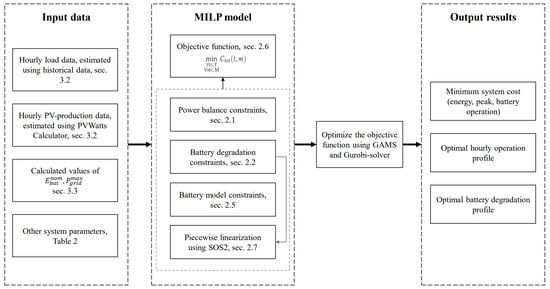In order to capture the seasonal characteristics with regards to PV generation and load demand, a planning horizon of one year with hourly time increments is considered in the simulations. A time resolution of one hour was chosen based on the energy market operating on an hourly basis, and it is a compromise between obtaining accurate results and lowering the computational speed. The mathematical model of the system, presented in Section 2, is written in The General Algebraic Modeling System (GAMS) and solved using Gurobi. Below, important system parameters are presented.