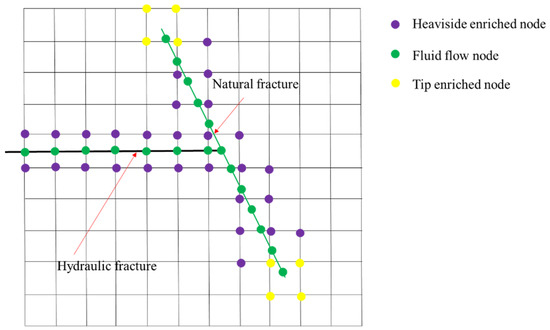 Schematic of enriched nodes and fluid nodes of a T-shaped fracture.