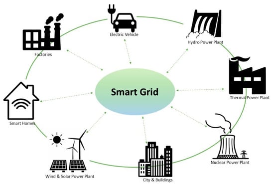 Nowadays, considering the development of smart devices, there is a keen interest in linking interfacing items through available networks [1]. The aim of smart devices is to share/access information to/from other devices for taking smart decisions by having the capability of being integrated into current infrastructures as much as possible [2]. On the other hand, currently people move to cities to improve their life quality and the United Nations expects that by 2050, 70% of the world’s population will be settled in cities [3]. It is evident that urbanization has its own challenges including resource shortage, energy and waste management, aging of the existing infrastructures, human health problems etc. [4,5]. The smart city idea has been the spotlight during last decade and is suggested as an optimal solution of overcoming urbanization problems by researchers. Herein, smartness is defined as the desire of improving the quality of life within cities and residents living there from several points of views by utilizing information and communications technology (ICT). However, employing ICT in city setups does not construe a smart city [6]. For a smart city concept, there are many definitions and a widespread one describes a smart city as the connecting environment of physical, social, business, and ICT infrastructure for elevating the intelligence of the city [7] by balancing the demand and supply of different functionalities [8]; 75–80% of world energy consumption is attributed to cities [9,10], which leads to the generation of 80% of the total greenhouse gas emissions [11]. Bearing this in mind, besides the scarcity of fossil energy sources and increasing populations of cities, the renewable essence of renewable energy sources best fits the recent global energy demands of sustainable smart cities [12]. Smart grids (SGs) or the updated version of traditional “dumb” energy infrastructures stand as the key and vital items supporting the concept of a sustainable future city [10]. They merge the non-renewable and renewable energy resources into each other, reducing the environmental problems. Meanwhile they carry the benefits of lower power cost and a reliable energy service [13,14,15,16]. There is a lack of monitoring/real-time control in the traditional non-smart systems, which creates a challenging opportunity for SGs to act as a real-time solution. In case of a smart city, the new generation of smart energy systems and grids have the capability to manage the energy of buildings which are on their way of modernization, by linking the smart grids and buildings to each other for efficient energy consumption/generation [17]. In fact, the smart grid provides new services for the inhabitants of smart homes (SHs) by the exploitation of available resources [18] and demonstrates a major potential from the viewpoint of economic and business value [19]. Making an allowance for the smart grids and taking into consideration their indispensable service to other infrastructures make them an exemplary guide for the implementation of the smart cities. By 2020, it is predicted that the smart energy sector will reach its highest development within the smart city territory. It is expected that 15.8% of the global smart energy market valued approximately US $248.36 billion will be devoted to smart energy [3].
