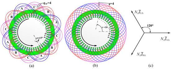 - Chen, J.; Chen, C. Investigation of a new AC electrical machine winding. IEE Proc. Electr. Power Appl. 1998, 145, 125–132. [Google Scholar] [CrossRef]