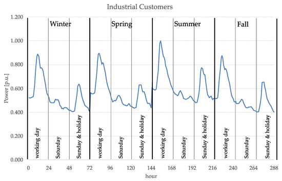 Typical daily profiles used for the industrial customers.