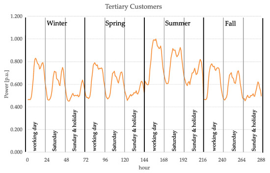 Typical daily profiles used for the tertiary customers.