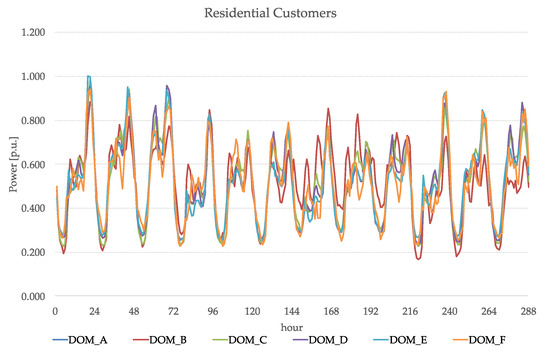 In Table 5, the total demand and the share of customers categories for each region, as made available by Reference [18], for the year 2015, is reported. By applying the above-described top-down procedure, twelve daily consumption profiles, representative of typical days of the year, have been obtained for each PS relevant to each administrative region.