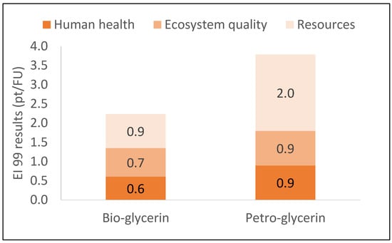 Life cycle assessment results of bio-glycerol scenario and petro-glycerol scenario.