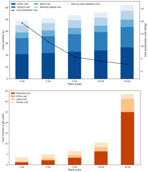 The lowest unit production cost obtained in this study was lower than that in the current marking price. This was because in this study, we only investigated gate-to-gate boundary in economic analysis; the whole TEA study stops when PSA is produced, hence, marketing, advertising and other miscellaneous are not considered. The unit production price calculated here was the merchant price.