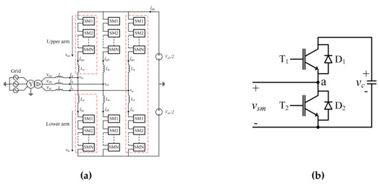 Basic structure of a modular multilevel converter (MMC): (a) Topology; (b) Submodule.