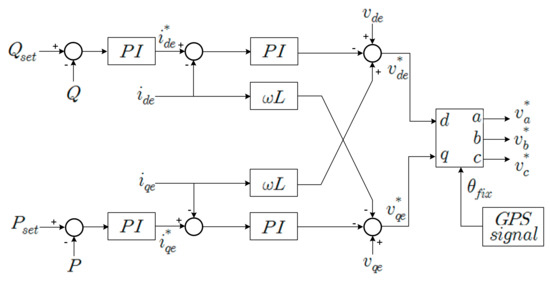 where vt and vs are the terminal and grid voltage. i is the three-phase current. R and L are the resistance and inductance, respectively. p is the differential operator. ω is the grid angular frequency. If the PI controller is used, the current controllers will be expressed as