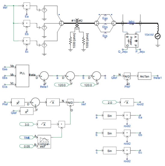 Three thermal power plants in the Jeju Island Power system are also operated separately. In this simulation case, the simplified equivalent controlled current sources are applied, as seen in Figure 10. The measured data will be used to operate this model.