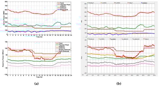Because there are many components of the Jeju Island power system, the line colors should be noted as the following colors in Table 3. This line color will be applied to every simulation result of active and reactive power.