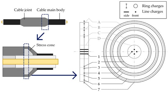 2.2.1. Charges Distribution Close to the Cable Joint and Its Accessories
