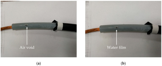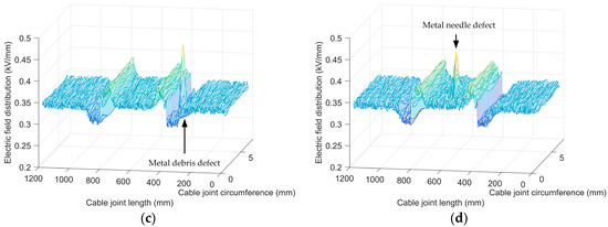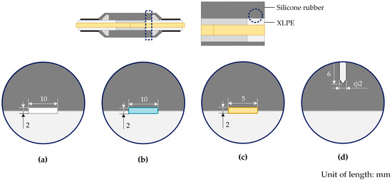 - Yang, H.; Liu, L.; Sun, K.; Li, J. Impacts of Different Defects on Electrical Field Distribution in Cable Joint. J. Eng. 2019, 2019, 3184–3187. [Google Scholar] [CrossRef]