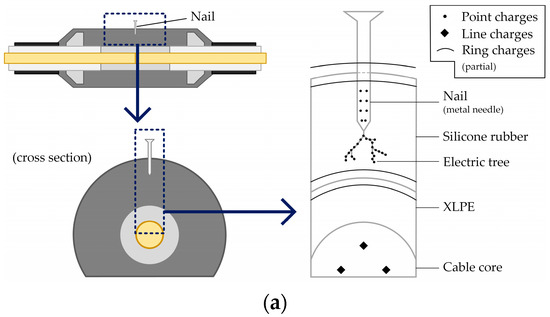 - Wang, Z.; Li, H.; Li, Y. PD Detection in XLPE Cable Joint based on Electromagnetic Coupling and Ultrasonic Method. In Proceedings of the 2011 International Conference on Electrical and Control Engineering, Yichang, China, 16–18 September 2011. [Google Scholar]