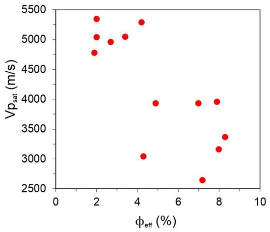 The results of the longitudinal wave velocity (Vp) measurements, bulk density, and effective porosity on the samples of the Cixerri Fm., the potential caprock [12], are given in Table 2. The longitudinal velocities (Vp) for the samples of the Cixerri Fm. that include a spectrum of lithologies, such as siltstones, wackes, sandstones and conglomerates, as can be seen from the optical microscopy (OM) and SEM analyses, range from 3070 to 5162 m/s for dry rocks and from the 2640 to 5344 m/s for water-saturated rocks.