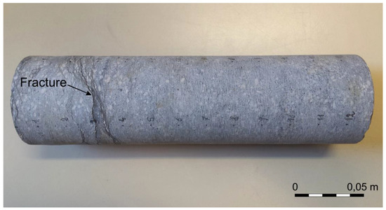 The dry and saturated density of the analyzed core samples were calculated as the ratio of the dry and saturated weights to the sample bulk volume. The samples were accurately weighed, and the bulk volume was accurately detected by the caliper method according to ISRM 2007 [59].