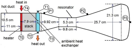 - Piccolo, A. Design issues and performance analysis of a two-stage standing wave thermoacoustic electricity generator. Sustain. Energy Technol. Assess. 2018, 26, 17–27. [Google Scholar] [CrossRef]