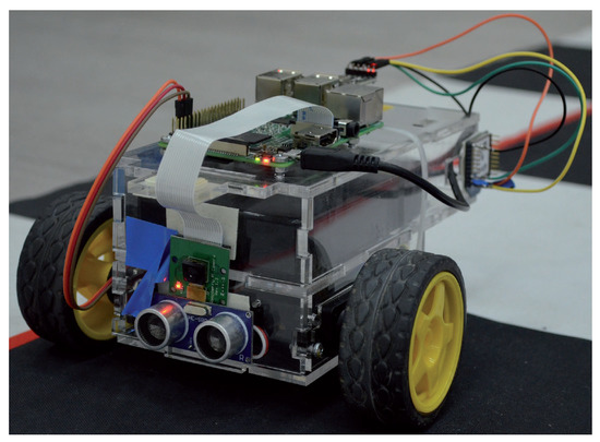 To conduct physical simulations, the model of the intersection should provide an imitation of a part of the urban road network. To establish the current location of any MAV, the roads were split into elementary square sections. Figure 6 presents the developed model of the roads and intersections. The roads consist of elementary sections that were colored in black and white and have borders colored in red.