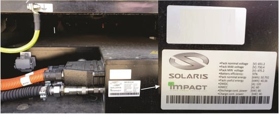 The Li4Ti5O12 (LTO) batteries that equip the electric buses (Figure 2) are batteries with superior thermal stability, high energy storage capacity in cells, and a high lifespan (expressed through charge–discharge cycles) [9,35]. LTO batteries have the following advantages: operating safety, longevity, performance, and power density, but have a low energy density and are expensive [36].