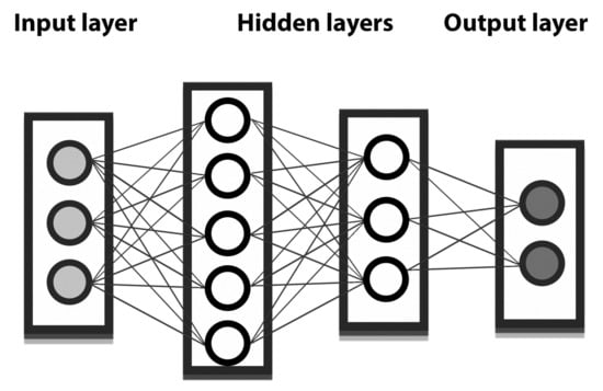 The neural network resembles the brain in some aspects: first, the knowledge is obtained by the learning process and, second, the interneuron connection strengths known as synaptic weights are used to store the knowledge []. In other words, the NN can be defined as a massively parallel distributed processor which can store experiential knowledge and make it available for use []. Neural networks are the preferred tool for many predictive applications because of their power, flexibility, and ease of use. Predictive NNs are particularly useful in applications where the underlying process is complex. Zarei et al. used NNs to study the effective parameters of a greenhouse on the freshwater production []. Moosavi et al. used an NN to predict CO2- foam injection in a Laboratory []. The multilayer perceptron (MLP) is a feedforward NN. It uses a supervised learning strategy to create predictive applications, in the sense that the model-predicted results can be compared against known values of the target variables. In addition to input and output layers, the MLP can contain multiple hidden layers, each of which may contain multiple neurons (Figure 9). The IBM SPSS Modeler Algorithm [] guide provides the following mathematical expression for the NN (MLP).