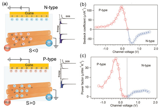 - Small, J.P.; Perez, K.M.; Kim, P. Modulation of thermoelectric power of individual carbon nanotubes. Phys. Rev. Lett. 2003, 91, 256801. [Google Scholar] [CrossRef]