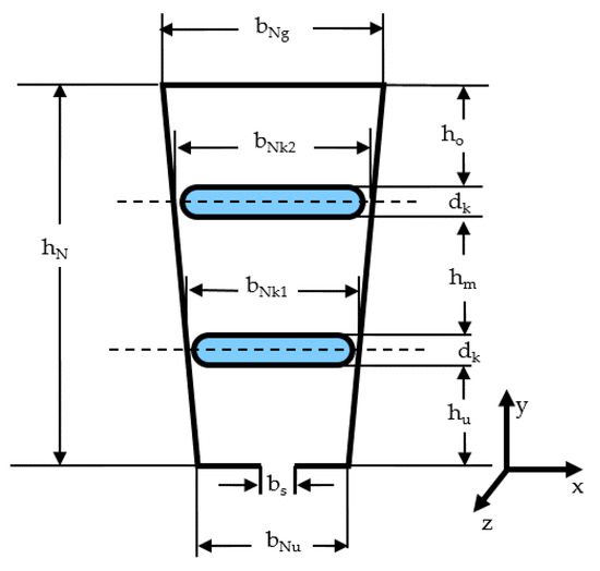 Distributed losses are observed in the winding and in the iron as well. To reduce the calculation effort, only the losses in the winding were calculated as distributed losses—elements with light blue filling in Figure 14—while the losses in the iron were represented with conventional lumped parameters. Due to the symmetry of the problem, it is sufficient to establish the thermal equivalent network for half of a slot in the x-direction with a symmetry line in the slot middle. All calculations were restricted to a 2-D-Heat flow problem. A heat transfer in the third dimension to the winding overhangs is neglected, so all calculations are on the safe side.