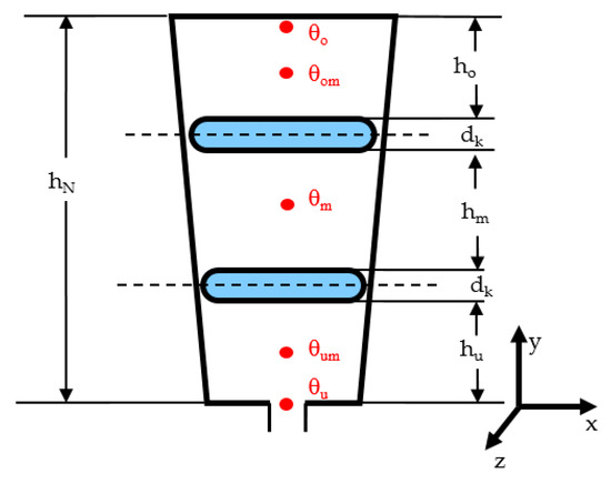 To improve the accuracy of the analytical calculation especially in regions possessing high current densities, a new calculation model for the regions with distributed losses was introduced, as shown in Figure 12.