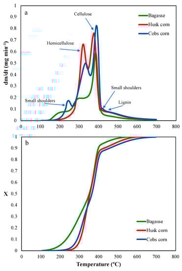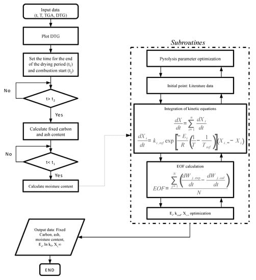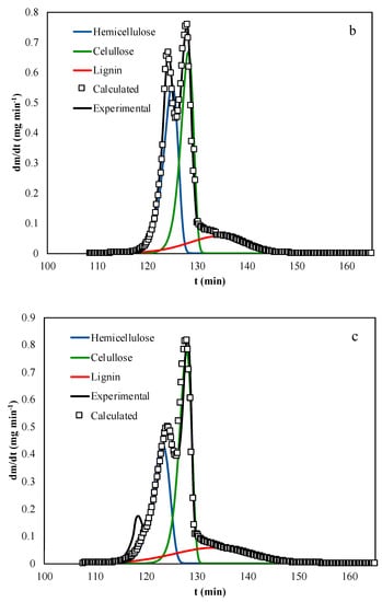 - Conesa, J.A.; Domene, A. Biomasses pyrolysis and combustion kinetics through n-th order parallel reactions. Thermochim. Acta 2011, 523, 176–181. [Google Scholar] [CrossRef][Green Version]