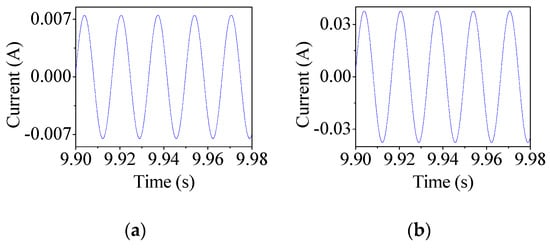 The test current: (a) Test voltage 1 V; (b) test voltage 5 V.