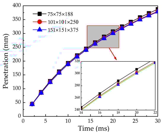 For the simulation of R134a flashing spray through OpenFOAM (The OpenFOAM Foundation Ltd, Incorporated in England, London, UK), we track parcels which represent multi-droplets with the same characteristics, instead of tracing each droplet. This method will enhance the computational efficiency greatly. The initial parameters for the numerical simulation are shown in Table 3, which are consistent with the R134a flashing spray experiment conditions [13]. The cuboid computation domain with uniform grid is adopted with a length, width and height of 200 mm, 200 mm and 500 mm, respectively. The straight-tube nozzle is positioned at the centre of the top surface. Three different size grids are tested to examine the grid independence. As can be seen in Figure 2, the penetration distance of R134a flashing spray does not vary with grid number larger than 101 × 101 × 250. Therefore, this grid was chosen in the simulation with 2,550,250 cells in total. The common method of examining the validation of a spray simulation is to compare the simulated spray morphology or droplet diameter variation with experimental results [15,30]. Here, we first compare the numerical spray morphologies of liquid and gas phases with experimental spray image of R134a flashing spray captured by high speed camera. As can be seen in Figure 3, they are consistent with each other. Both the numerical and experimental spray morphologies expand rapidly towards the radial direction and then remain relatively stable as the spray goes further. Droplet D32 diameters from experiment and numerical simulation will also be compared and discussed in the next section to further validate our simulation. More valuable information about the numerical approach and validation can be found in [31], in which Minea et al. provide good guidance on how to rigorously develop a numerical approach and how to validate the grid and the model.
