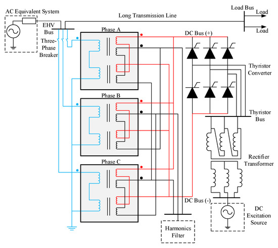 - Gu, X.; Wu, Y.; Qu, T.; Xu, W.; Liu, D. The simulation of the controllable reactor and it’s application in ultra high voltage transmission lines. In Proceedings of the 2011 IEEE International Conference on Advanced Power System Automation and Protection, Beijing, China, 16–20 October 2011; pp. 1833–1837. [Google Scholar]