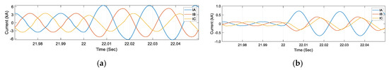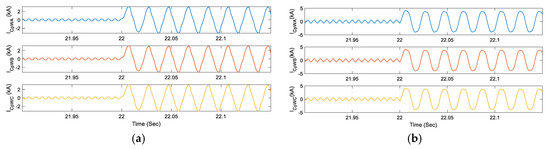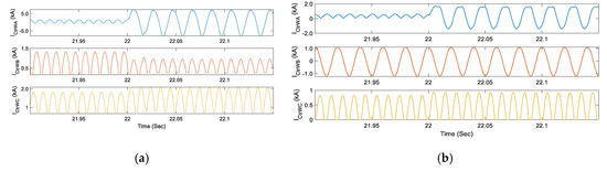 Currents of CpW A, B, and C during a 3% PW T2TF in limb 1 of phase A under (a) 100% capacity; and (b) 10% capacity.